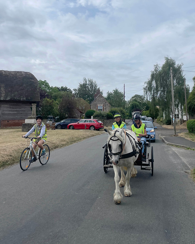 Our ponies are assessed by the RDA for their temperament and reliability. The carriages are relatively low to the ground and designed for easy access. The 4 wheeled carriage has a folding ramp to allow wheelchair access and so that the participant can be seated alongside the RDA coach. When we drive on the road support cars, carrying volunteers and carers, are positioned in front and behind the carriages. We also have support cyclists strategically placed around the carriages and to help manage traffic flow. Most local drivers and cyclists are considerate and have become used to us